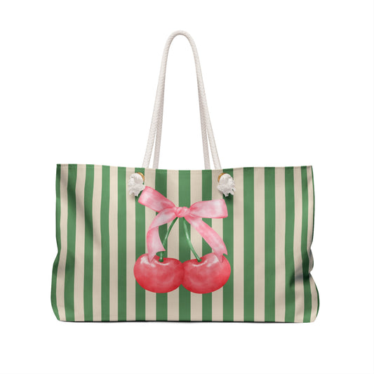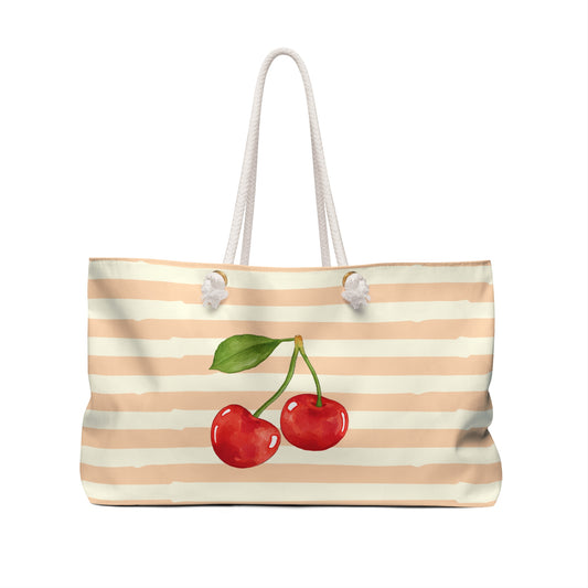 French Riviera Cherry Beach Bag, Weekender Tote, Luxury Chic Style